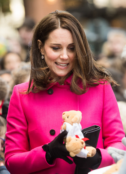| Catherine, Duchess of Cambridge was presented a teddy bears, as she visits Coventry Cathedral on January 16, 2018 in Coventry, England. |